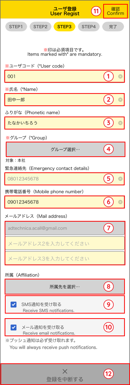訂正がある場合は左上の「<」をタップし、修正してください。