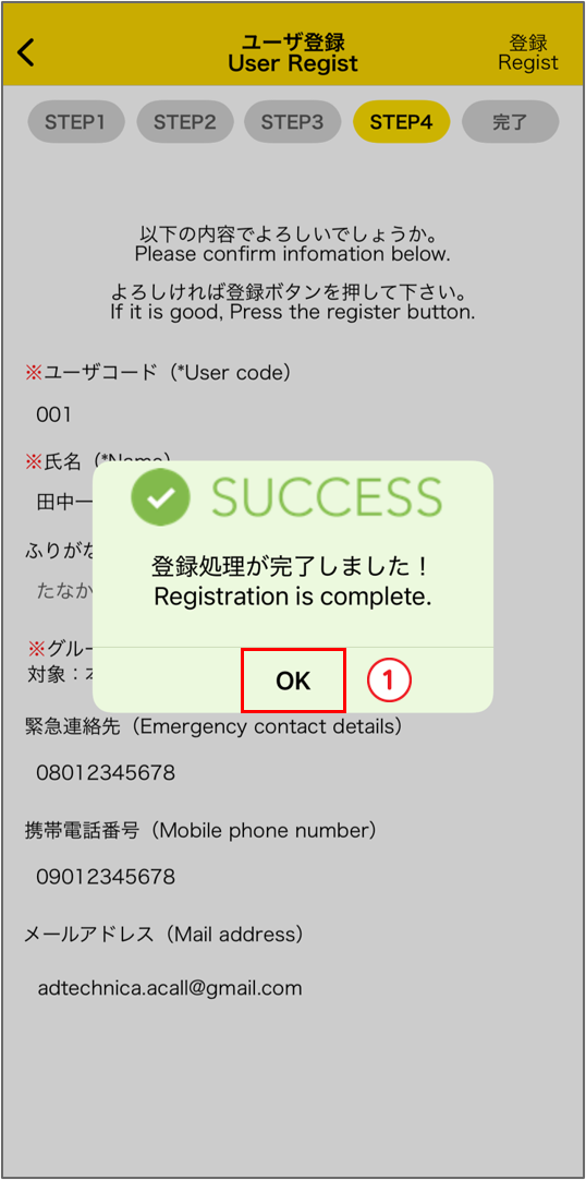「登録失敗」と表示された場合は、お手数ですがもう一度やり直してください。