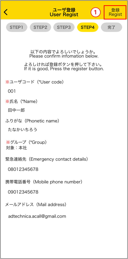 「登録」をタップすると登録が完了します。